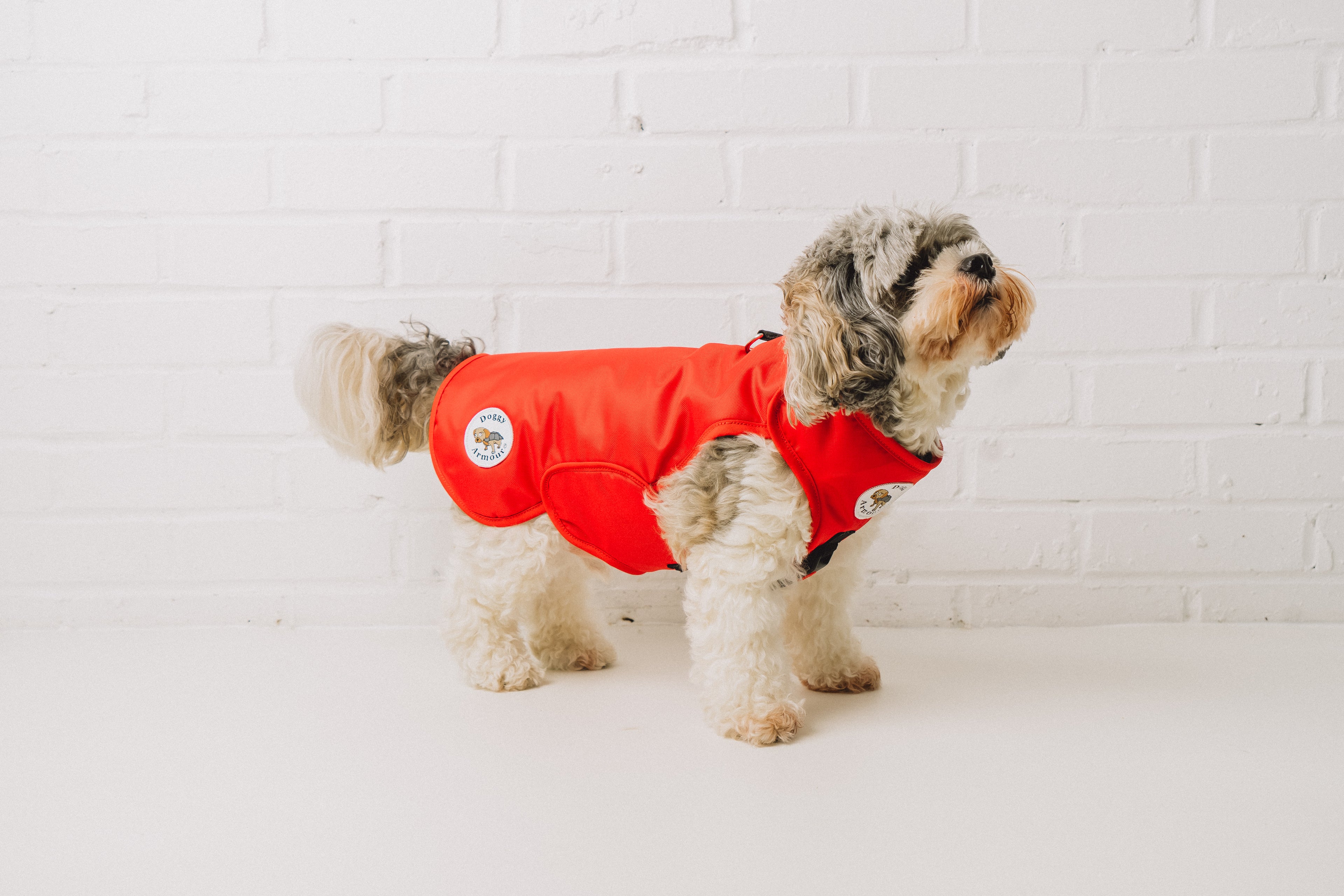 Doggy Armour is an armoured dog coat designed to protect your dog against attacks and injury.